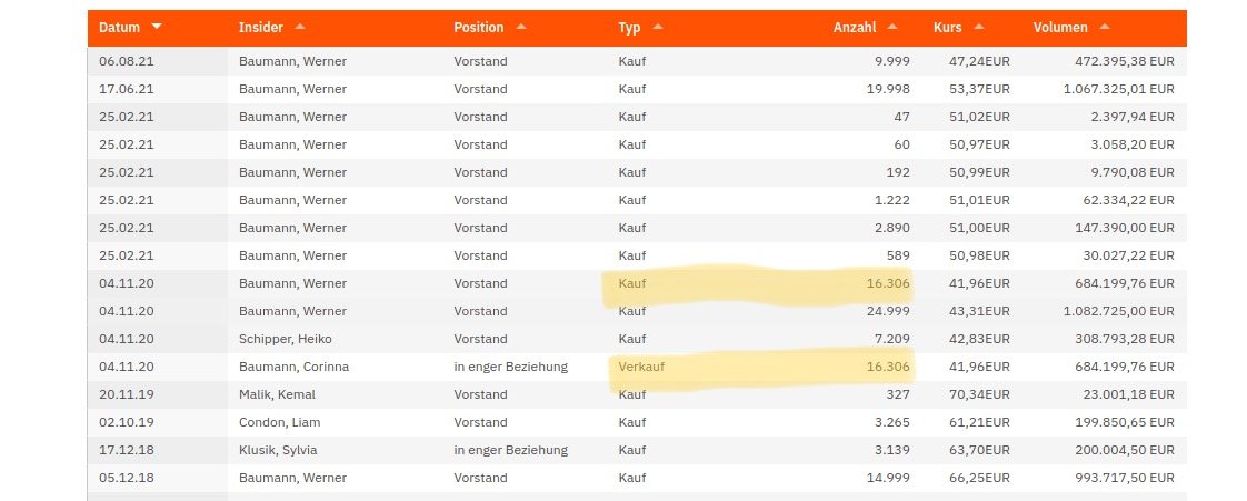 hattifnatt April 4, 2022 vor 10 Minuten von boersenschwein: siehe Baumanns Insider Deal bei um 41EUR Bild Anhang Bei seiner Frau Corinna aber das genaue Gegenteil - welche Infos hatte die dann? Diesen Beitrag teilen Link zum Beitrag