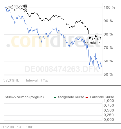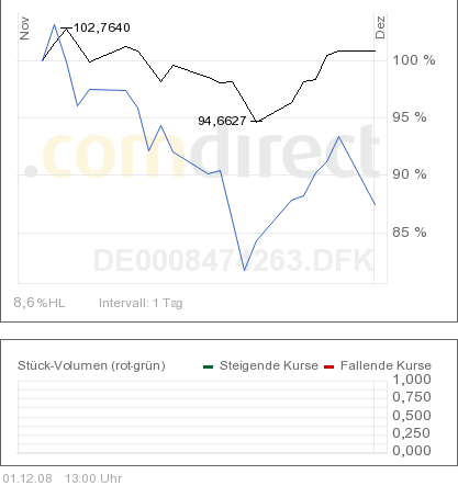 Sirius Dezember 2, 2008 · bearbeitet Dezember 2, 2008 von frank05 In der Finanzpresse war zu lesen, dass Wandelanleihen fallende Kurse zu ca. 1/3 1/2 (korrigiert) mitmachen, steigende Kurse aber zu 2/3. Im Verlauf von einem Jahr hat der MSCI World 40% und der Convertibles 25%. Er hat den Abstieg also zu über 60% mitgemacht. Die Kursrallye dieser Tage geht dagegen fast spurlos an dem Fonds vorbei, gestern hat er sogar 1,8% nachgegeben. Und dabei sollten Wandelanleihen von steigender Volatilität profitieren. Ganz schön enttäuschend! Mittlerweile hat sich der Fonds stabilisiert, seit etwa Mitte Oktober läuft der Fonds seitwärts. Im November hat der Fonds sogar zugelegt, während die Aktienmärkte (MSCI World, blau) gut 12 % verloren haben. Im zwischenzeitlichen Abschwung im November hat der DWS Convertibles sogar weniger als 1/3 wie der MSCI World verloren - möglicherweise hat der Fonds das Delta erhöht. Der Grund für die für Wandelanleihen ungewöhnlich hohen Wertverluste im September und Anfang Oktober waren die Zwangsverkäufe von Hedgefonds gewesen, die traditionell stark in Wandelanleihen engagiert sind. Bei Wandelanleihen gibt es im Moment höhere Renditen als bei Unternehmensanleihen und die Wandelrechte gratis dazu. Im Hinblick auf die Abgeltungssteuer könnte ein Kauf bis Jahresende noch interessant sein. Ich bin Anfang Oktober auch aus dem Fonds ausgestiegen und denke derzeit über einen Wiedereinstieg nach. Zweistellige Renditen mit WandelanleihenVon Karsten Seibel Und Holger Zschäpitz 15. November 2008, 01:52 Uhr Papiere verbinden die Chancen von Aktien mit dem Schutz von Anleihen - Einzeltitel sind aber oft wenig liquide Frankfurt/Main - Viele Anleger befinden sich derzeit in einem Zwiespalt. Nach einer Umfrage des Marktforschers Infratest erwartet die Hälfte der Privatanleger in den kommenden sechs Monaten steigende Kurse. Doch nicht einmal jeder Dritte der Optimisten will auch wirklich handeln. Diesen Unentschlossenen kann geholfen werden. Denn es gibt eine Anlageklasse, die die Chancen von Aktien und den Schutz von Festverzinslichen verbindet. Diese Papiere heißen Wandelanleihen und bieten derzeit großes Potenzial. "Noch nie in meiner Karriere habe ich eine so günstige Situation für Wandelanleihen gesehen", sagt Carl Fox, der für Union Investment zwei Mrd. Euro in diesen auch Convertibles genannten Titeln verwaltet. Wandelanleihen sind im Grund nichts anderes als festverzinsliche Wertpapiere. Der einzige Unterschied zu klassischen Bonds liegt darin, dass der Anleger am Ende der Laufzeit nicht einfach sein Geld zurückbekommt. Er kann die Anleihe auch in eine vorher festgelegte Zahl von Aktien des Emittenten wandeln. Steigt der Börsenkurs während der Laufzeit kräftig an, wird sich der Investor für die Aktie entscheiden. Sinken dagegen die Notierungen, gibt es zum Schluss Bargeld zurück. Aus diesem Wandlungsrecht resultiert der Name für diese speziellen Anleihen. Das Risiko für Sparer, die traditionell Festverzinsliche bis zum Laufzeitende halten, ist damit allein auf die Zahlungsunfähigkeit des Emittenten begrenzt, weil es ja im Zweifelsfall eine Geld-zurück-Garantie gibt. "Der Anleger profitiert von einer Erholung der Aktiemärkte. Und selbst wenn die Börsen in einigen Jahren immer noch auf dem niedrigen Niveau notieren, winken ihm zweistellige Renditen", sagt Fox. Tatsächlich sind die Papiere derzeit besonders attraktiv, weil deren Kurse zuletzt gewaltig unter Druck kamen. Das liegt zu einem Teil daran, dass die weltweite Rezession die Zahlungsfähigkeit vieler Unternehmen verschlechtert. Doch noch stärker fällt ins Gewicht, dass Hedgefonds als wichtigste Gruppe von Wandelanleiheninvestoren in den vergangenen Monaten massive Abflüsse verzeichneten und damit die Papiere zu jedem Preis verkaufen mussten. "Nach solchen Zwangsverkäufen gibt es Chancen für Anleger", sagt Patrick Gügi, Chef der auf Wandelanleihen spezialisierten Fisch Asset Management. Viele Convertibles seien drastisch unterbewertet. "Das Wandelrecht gibt es für Anleger derzeit quasi gratis." Ein Beispiel ist ein Wandler der staatlichen Förderbank KfW, der bis Februar 2010 läuft und aktuell mit 4,7 Prozent rentiert. Dagegen wirft eine klassische KfW-Anleihe mit gleicher Laufzeit gerade einmal etwas mehr als drei Prozent ab. Dabei haben Anleger des Convertibles noch die Chance, an der Kursentwicklung der Post-Aktie mitzuverdienen. Sollte die Aktie Gelb in den kommenden 15 Monaten über 19,38 Euro klettern, könnten die Anleger sogar noch mehr als die erwähnten 4,7 Prozent mit dem Wandler erzielen. Auch wenn die Post-Aktie für die Mehrrendite um rund 90 Prozent steigen müsste, sind die 4,7 Prozent für den staatlich garantierten Bond attraktiv. Bei anderen Wandelanleihen gibt es deutlich höhere Renditen. Insbesondere Papiere aus der Branche der erneuerbaren Energien bieten ohne Beachtung des Wandlungsrechts schon zwischen 13 und 20 Prozent (siehe Tabelle). Allerdings ist hier auch die Gefahr, dass die Unternehmen am Ende der Laufzeit die Anleihe nicht zurückzahlen können, deutlich höher. (...) http://www.welt.de/welt_print/article27283...elanleihen.html Diesen Beitrag teilen Link zum Beitrag