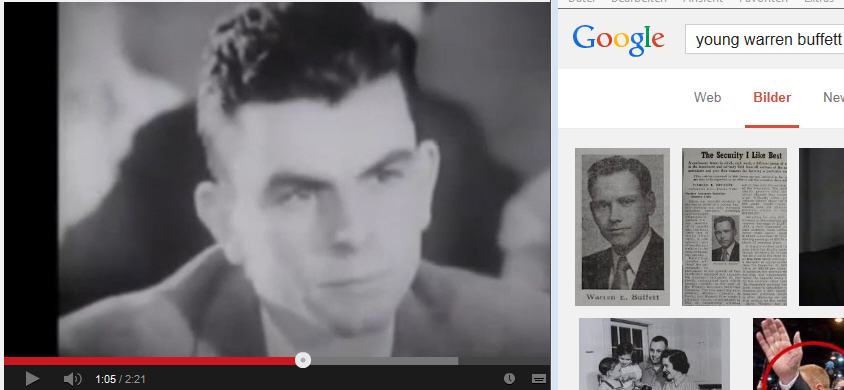 Der Pate April 8, 2014 · bearbeitet April 8, 2014 von Der Pate Ist der Mann mit der Brille bei 0:34 wohl Warren Buffett in jungen Jahren?:- Diesen Beitrag teilen Link zum Beitrag
