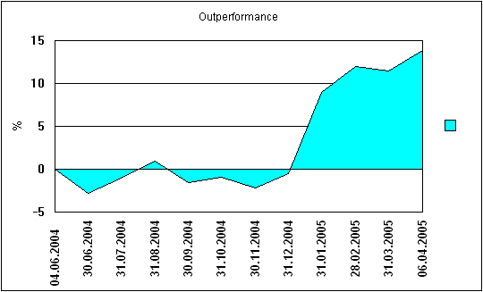 Aktiencrash April 6, 2005 Hier der Outperformancechart zum Dax. Das Depot schlägt den Dax um 13,95 % seit Auflegung ! Diesen Beitrag teilen Link zum Beitrag