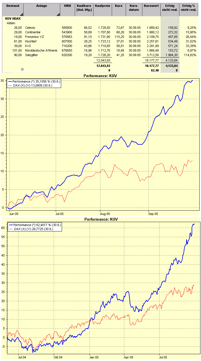 Aktiencrash August 2, 2005 Ungebrochener Aufwärtstrend für das KUV-Depot ! Diesen Beitrag teilen Link zum Beitrag