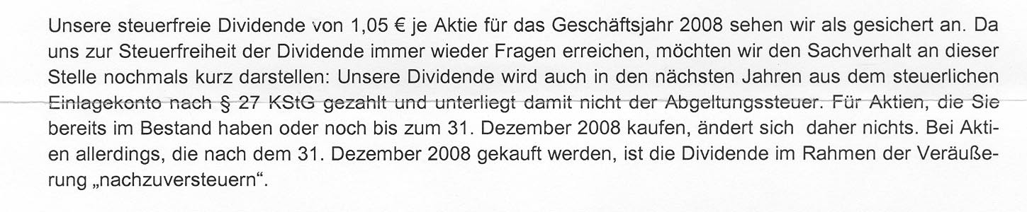 Brandscheid August 25, 2008 bleibt die dividende auch in zukunft langfristig steuerfrei? die kapitalintensität liegt am geschäftskonzept. ich halte das unternehmen auch auf der watchlist. Diesen Beitrag teilen Link zum Beitrag