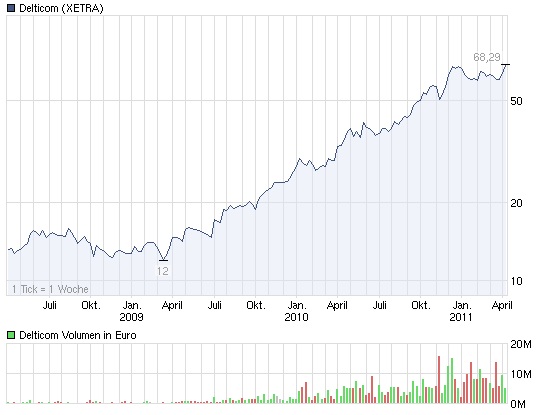 Stairway April 19, 2011 Delticom hat heute die Zahlen für das erste Quartal bekanntgegeben. Besonders interessant: Trotz starkem Winter im Vorjahr und späten Ostern dieses Jahr stieg der Umsatz um 15% - das ist schon sehr stark und wurde so nicht erwartet. Die Marge gab erwartungsgemäß nach, weil einfach im Vorjahr durch den langen Winter die Preise höher gehalten werden konnten. Ein sehr guter Start ins neue Jahr und die Aktie steht, wenn ich das richtig sehe, vorbörslich auf Allzeithoch. Diesen Beitrag teilen Link zum Beitrag
