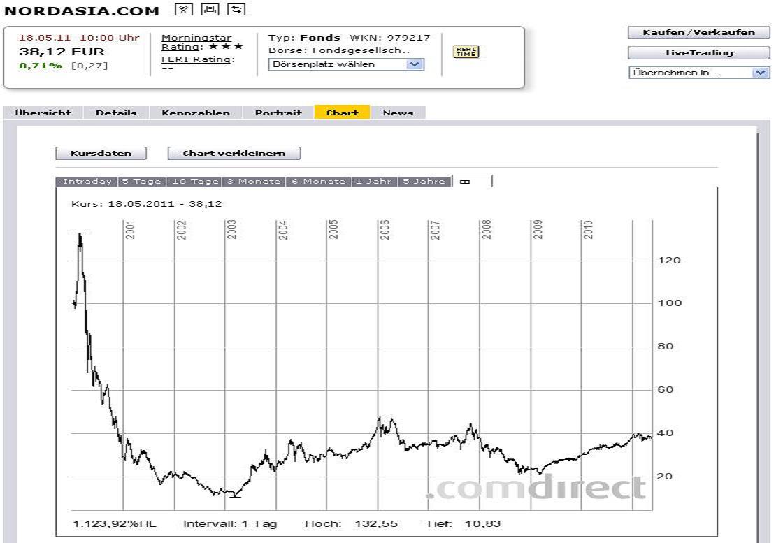 Padua Januar 27, 2011 Wie bei jedem anderen Fonds stellt sich die Frage, ob Du den Fonds heute kaufen würdest, weil Du zukünftig eine für Dich passende Wertsteigerung erwartest. Wenn Du diese Frage mit Ja beantworten kannst, dann behalte den Fonds. Im anderen Fall würde ich ihn verkaufen. Der grottenschlechte Start im Jahr 2000 ist zwar für Dich als Langzeitanleger ärgerlich. Trotzdem kann sich eine Umschichtung rächen, wenn die neue Anlage zuküftig schlechter läuft als mit dem Nordasia.com. Die Einschätzung kann Dir leider keiner abnehmen. Wenn ich mir den Anlagegrundsatz "Das Fondsmanagement investiert in Aktien, die vom zu erwartenden Internet-Boom im asiatischen Raum profitieren werden. Der Fonds wird aktiv gemanagt." so ansehe, würde ich persönlich in diesen Fonds nicht investieren, weil ich mir einen berauschenden Internetboom im asiatischen Raum nicht wirklich vorstellen kann. Asien wird zwar ein interessanter Markt bleiben - aber Internet? Gruß Padua Diesen Beitrag teilen Link zum Beitrag