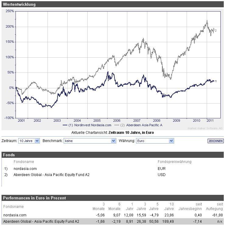 Hasenhirn Januar 26, 2011 Hallo ihr Lieben--Schlechter Start, so viel ist sicher. Aber wie immer auch alles eine Frage der Perspektive; nach der Dotcom-Krise ging's dann eigentlich ganz ordentlich. Vielleicht nicht die passendste Benchmark, aber mehr gab OnVista auf die Schnelle gerade nicht her: 3 Jahre: 9 Jahre: Würde Fondsanleger1966 zustimmen und nicht einfach so verkaufen--Liebe Grüße, H. Diesen Beitrag teilen Link zum Beitrag