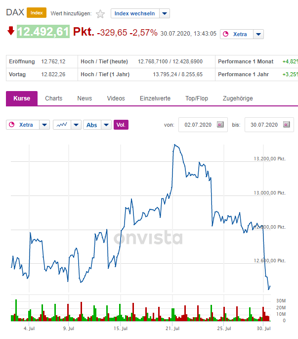 Synthomesc_alt Juli 30, 2020 vor 6 Stunden von Widofnir: Offensichtlich gibt es doch einen Unterschied zwischen dem eingepreisten Sachverhalt und der tatsächlichen Meldung darüber... vor 5 Stunden von Madame_Q: So einfach ist es eben nicht. Das ist aber doch alles nichts Neues....an der Börse wird zwar die Zukunft gehandelt, aber wie sehr sie sich dann doch eben vom "Tagesgeschehen" beeinflussen lässt sieht man ja immer und immer wieder..... Heuer mussten die 4 CEO von den großen Tech Unternehmen Rede und Antwort stehen....sollten dann noch die Demokraten bei den Wahlen gewinnen wird sich das massiv auf die Börse auswerten... Ergo es bleibt spannend...wird ein heißer Herbst! Diesen Beitrag teilen Link zum Beitrag