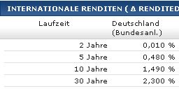 Du willst doch nicht ernsthaft behaupten, dass wenn die Zinsen (siehe unten) von diesen "Tiefs" um 1% steigen der Staatshaushalt zusammenbricht?
