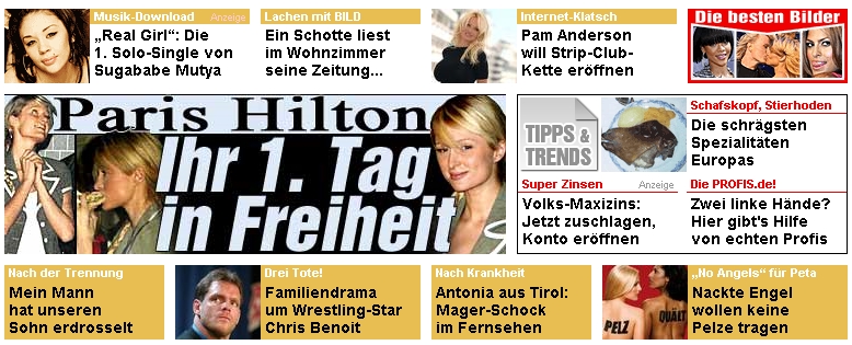 @ndy Juni 27, 2007 Daily Soap: Nachdem Sie gestern nicht mehr richtig Sch...n konnte, läuft der Vertrieb jetzt wieder an.... Ich finde es schlimm wenn man gerade Radio hört und die erste Nachricht lautet:"Paris Hilton wieder in Freiheit!" WEN interessiert das??? Haben wir keine anderen Sorgen? Ich halte solche Nachrichten in Zeitung oder Radio für gezieltes "Fernhalten der Bevölkerung vor den wirklich wichtigen Sachen" Wen interessiert folgende Nachricht:"Lindsay Lohan auf Entzug!" Ich versteh ja wenn`s die Bild Zeitung schreibt aber im Radio? Diesen Beitrag teilen Link zum Beitrag