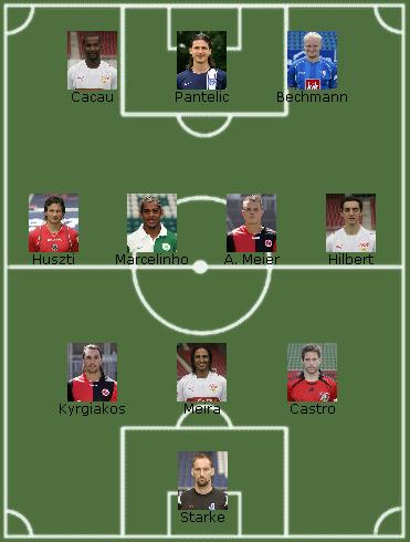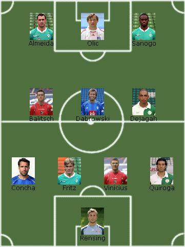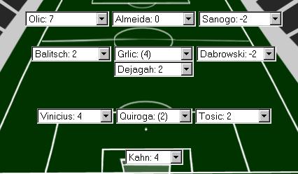 Dendi Oktober 5, 2007 +++ Öfters mal was Neues +++ gezielte Veränderungen Hintertupfingen [WPF] Das WPFBild Team hat gegenüber dem letzten Spieltag nur geringfügige Veränderungen vorgenommen. Das bekannte "wir schießen doch keine Tore" Trio aus Almeida, Sanogo und Olic wird trotz der Fragezeichen bei den Bremern beibehalten. Im Mittelfeld wird diesmal mit einer 3er Formation bestehend aus Balitsch, Dejagah und Dabrowski gespielt. Der Verzicht auf den Kapitän der Duisburger Grlic war am letzten Spieltag eine erfolgreiche Maßnahme und wird aufgrund des schweren Spiels beibehalten. In der Abwehr übernimmt der offensiver eingestellte Fritz die Position von Tosic, der sich durch kontinuierlich gute, aber unauffäligere Leistungen den Platz bisher gesichert hatte. Concha rückt nach seiner überragenden Leistung am letzten Spieltag wieder in die Mannschaft. Nachdem Maltritz verkauft wurde werden in Ihn große Hoffnungen gesetzt. Vinicius bleibt trotz seiner schlechten Benotung am letzten Spietlag weiterhin in der Mannschaft, ebenso wie der Wolfsburger Quiroga. Im Tor steht für den verletzten Oliver Kahn nun mit Rensing der zweite Mann der Bayern. Schauen wir mal, was der Spieltag an Würfelglück bringt. Disclaimer: Wir übernehmen keine Verantwortung für fehlgeschlagene Investitionen, indische Aushilfsmanager, unter dem Marktpreis verkaufende N00bs, Aufbau-Ost Fanatiker, Spieler 15-18, die Korrektheit der mathematischen Grundregeln, Toreschießende Bayern, Titelvergeigende Schalker und sonstige Vereine, die über ein zu gutes Finanzpolster verfügen. Diesen Beitrag teilen Link zum Beitrag