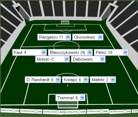 CSK Dezember 7, 2007 So meine Aufstellung steht eigentlich. Fangen wir aber mit einem Rückblick an. Rückblick: Während der vergangenen Woche konnte mit Kuba von Rudi Ratlos ein Rückkehrer gekauft werden. Für ihn wurde der überteuerte Kern verkauft. Mit der Differenz konnten noch ein paar Graupen und Dabrowski gekauft werden. Aufstellung: Die Schnäpse müssen wegen dem Verkauf von Kern das System zu einem 3-5-2 ändern. Im Tor spielt weiter hin Tremmel, der gegen Hamburg wieder eine Chance hat sich auszuzeichnen. In der Abwehr muss Rahn wieder auf die Bank. Er hat aber noch die Chance Oko zu verdrängen. Weiterhin werden Maltritz, Krstajic und Reinhardt in der Stammelf spielen. Im Mittelfeld werden Kuba und Dabrowski direkt zu ihren Einsätzen kommen. Außerdem werden Petric, Mutzel und Kauf spielen. Im Sturm werden weiterhin Rangelov und der Wackelkandidat Oko auflaufen. Diesen Beitrag teilen Link zum Beitrag