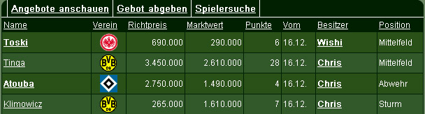 Seh' grad.... Rudis neue Taktik in der Winterpause ist, einige Spieler zu angemessenen Preisen abzugeben. Da unterbreite ich ihm doch gleich mal ein freundliches Angebot..... bin gespannt.... :rolleyes: B)