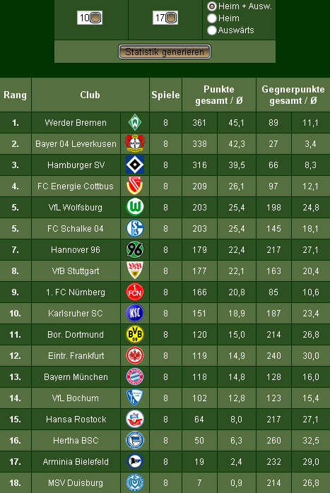 **) Edit: Korrektur wg. fehlender Punktberechtigung am 17. Spieltag