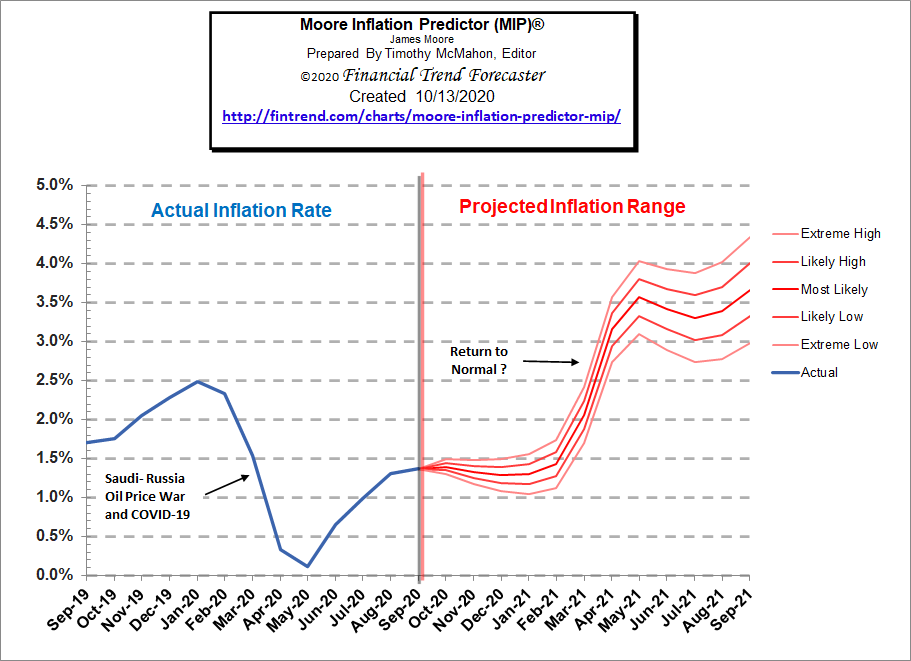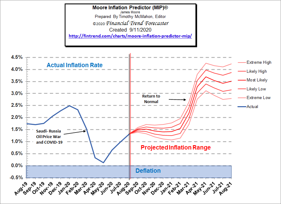 nicco September 13, 2020 Zitat Current MIP Projection There is also the possibility that the recent massive FED money printing will kick us into much higher inflation. But current projections are that inflation could spike to over 4%. Moore Inflation Predictor Diesen Beitrag teilen Link zum Beitrag