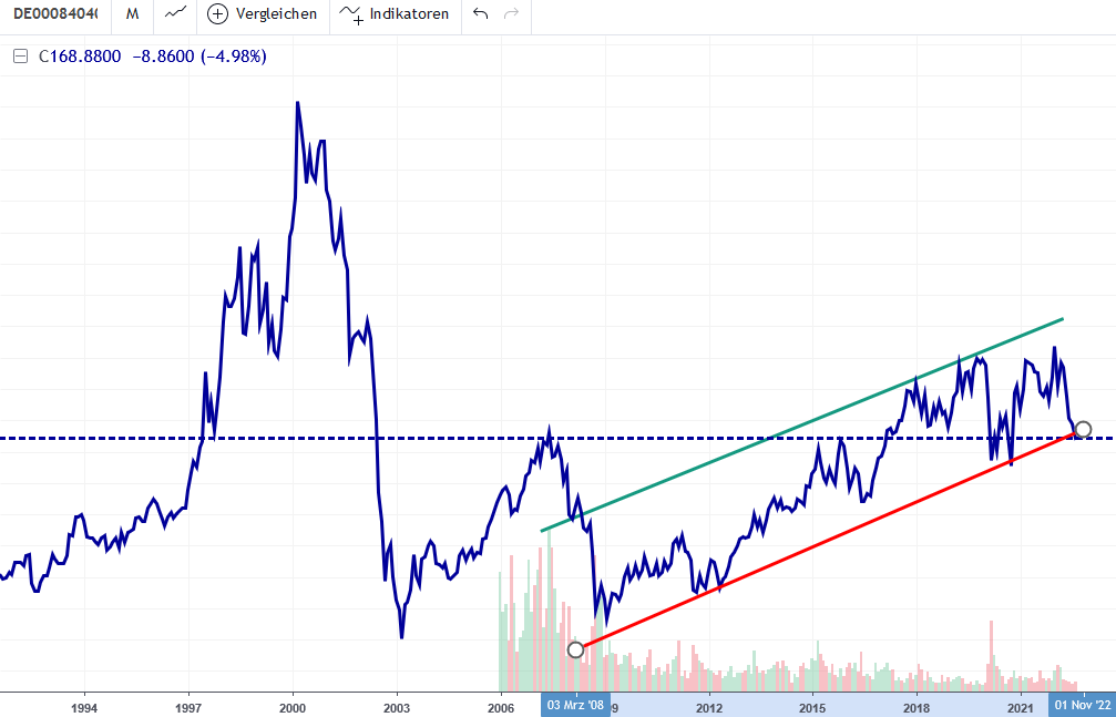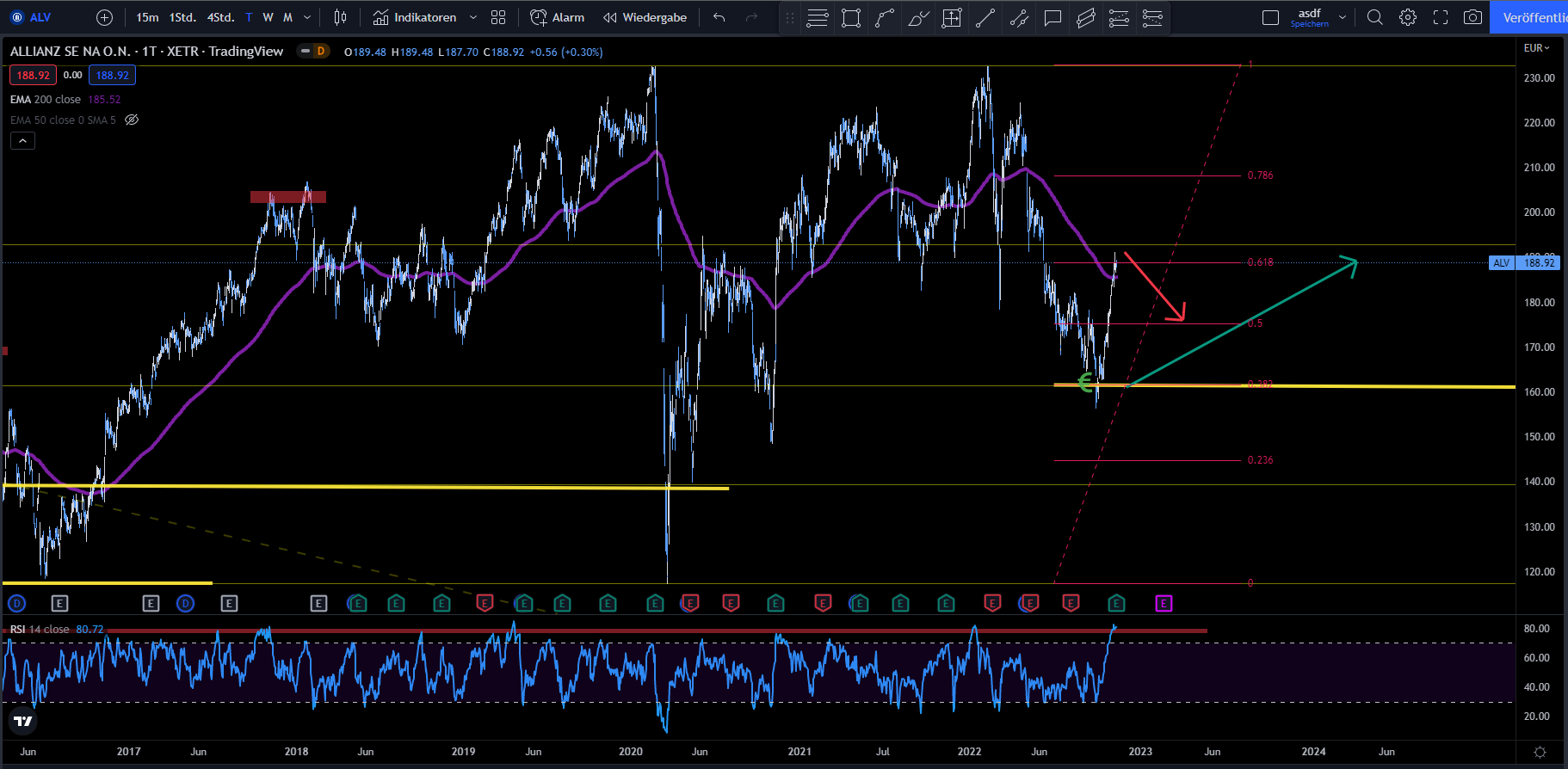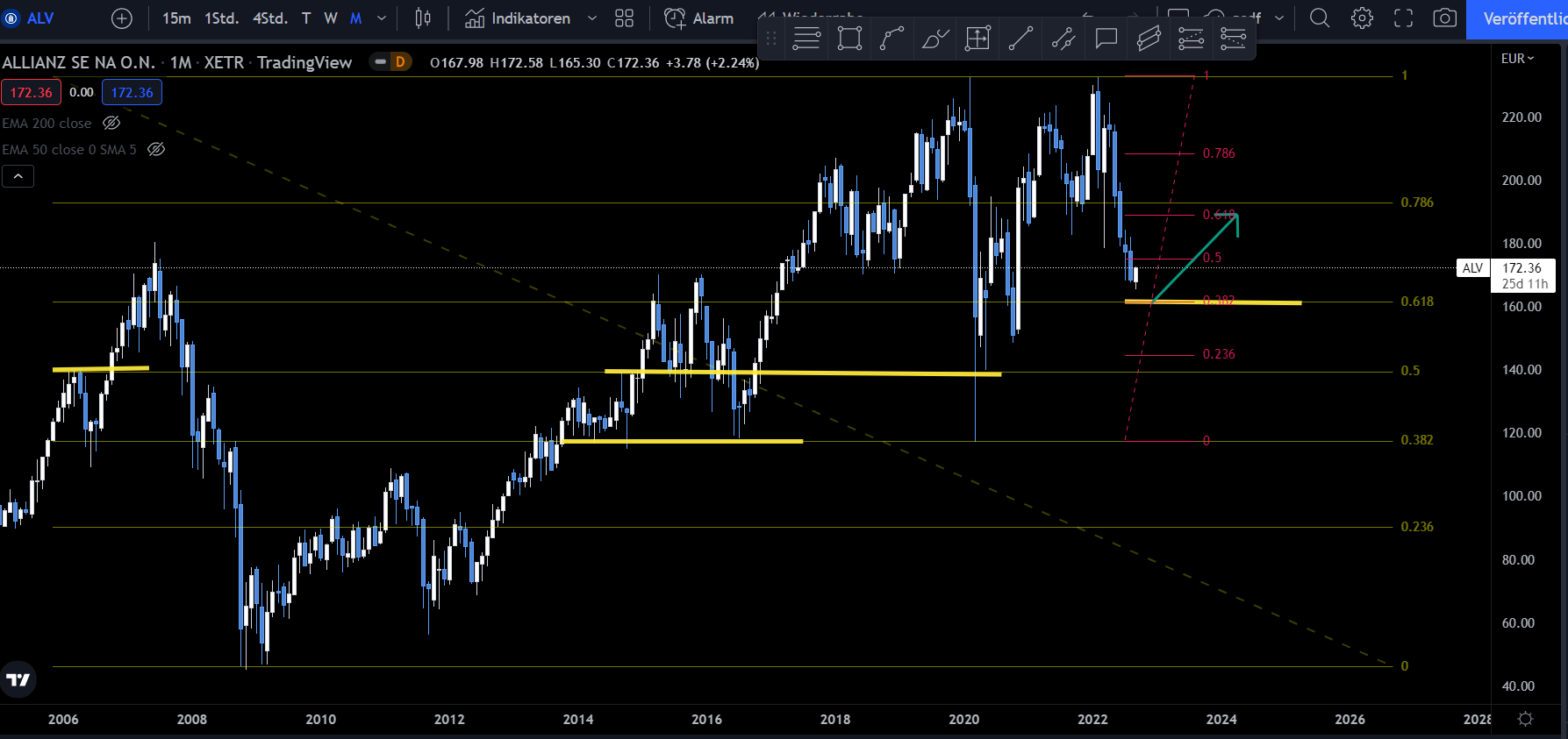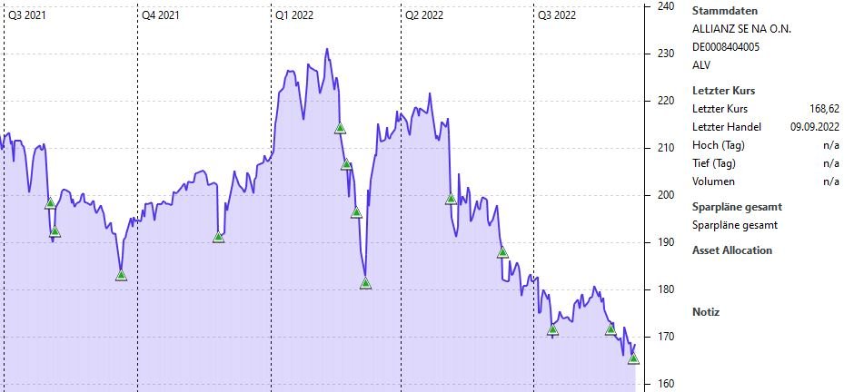uth_broker September 12, 2022 Die Allianz Aktie hatte über viele Jahre einen langfristigen Aufwärtstren, wie das folgende Diagramm zeigt. Dazu kamen stattliche Dividenden. Momentan wird dieser langfristige Aufwärtstrend offenbar hart auf die Probe gestellt. Trotzdem: Für mich weiterhin ein Investment. Unter 160 € würde ich sogar nachkaufen. Diesen Beitrag teilen Link zum Beitrag