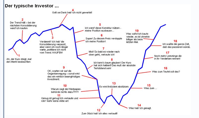 Micos Juni 27, 2007 [...] noch ein Tausender setzen - 50 % Verlust scheiss Spiel , ich gehe rauss und bringe mein Geld in Sicherheit. ( 2003 ) DAX43 wenn man damit anfängt, sollte man mit einem dicken Minus natürlich nicht aussteigen. Vielleicht etwas umschichten, aber ansonsten aussitzen und nicht zu oft ins Depot schauen. Da ich so einen Fall bisher noch nicht mitgemacht habe ist es blanke Theorie, ich kann mir vorstellen dass es nicht einfach ist zuzusehen wenn das Depot zusammenschrumft. Aber wenn man die Theorie begriffen hat und sich eisern an den Plan hält, ist es doch schonmal ein Anfang. denn ... [...]Wichtig ist eigentlich nur, das du dir ziemlich sicher sein kannst, das der DAX IRGENDWANN mal über die 10.000 geht und darüber hinaus. [...] Diesen Beitrag teilen Link zum Beitrag