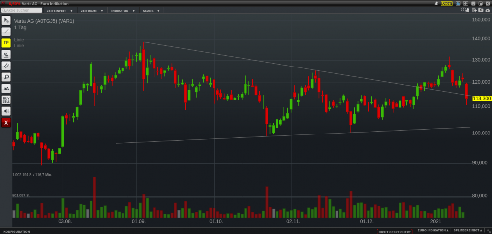 Hauerli Januar 29, 2021 · bearbeitet Januar 29, 2021 von Hauerli vor 3 Stunden von Wuppi: Während der Diskussion hier und nach einigen weiteren Recherchen hab ich mich kurz vor US Handelsbeginn dann doch noch dazu entschieden eine Verkaufsorder bei 170€ zu stellen (falls man es nicht glaubt, ich weiß ja wie das hier im Forum im nachhinein kritisch gesehen wird, liefere ich gerne Screenshots ). Was ein Glück das die tatsächlich noch ausgeführt wurde (14:49) denn jetzt knallts bei Varta ja so richtig. Und Melvin Capital, von dem ich oben noch gedacht habe das er sich noch nicht eingedeckt hat, hat soeben die Information rausgegeben das sie nun ihre Position von über 4,3% auf gerade einmal noch 0,49% gesenkt haben. Damit ist die Fantasie der Investoren raus,die auf einen Shortsqueeze spekuliert haben. Dann lag ich ja mit allen nicht so schlecht bin auch bei 163 raus hat etwas spät gegriffen Wenn der Kurs auf 125€ fällt steige ich wieder ein, nachdem alle he raus sind kann ich mirvorstellen das der Kurs die nächsten Wochen eine Erholung aufweist . An sich setze ich bei Varta immer noch auf Auto Batterien Diesen Beitrag teilen Link zum Beitrag