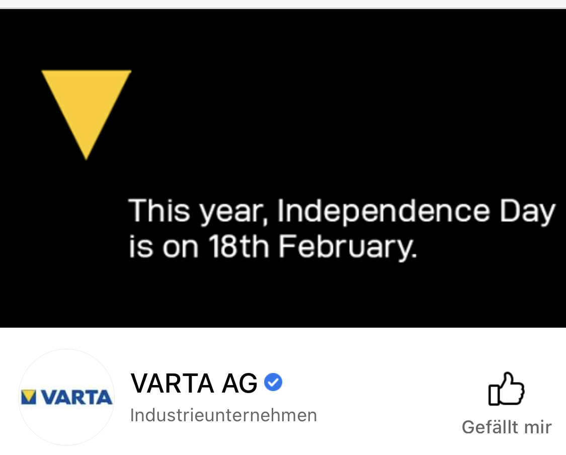 Hauerli Februar 16, 2021 Mal sehen was für eine Überraschung am 18. präsentiert wird . Varta Facebook Titelseite : Diesen Beitrag teilen Link zum Beitrag