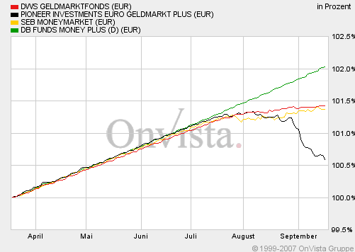 Eine Fondschließung wäre sicherlich der Hammer. Und würde den Geldmarkt weiter destabilisieren (Run auf andere Fonds ...). Aber momentan liest man von der Wertentwicklung des Pioneer Geldmarkt Plus gar nichts.