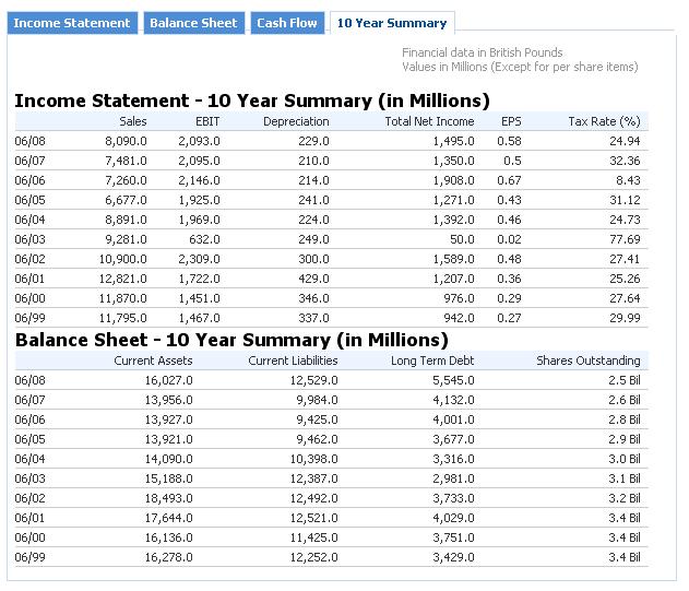 klausk August 16, 2007 Versuchs mal bei yahoo. Am linken Bildrand sind auch Links zu Income Statement, Balance Sheet, Cash Flow und Historical Prices. Diesen Beitrag teilen Link zum Beitrag