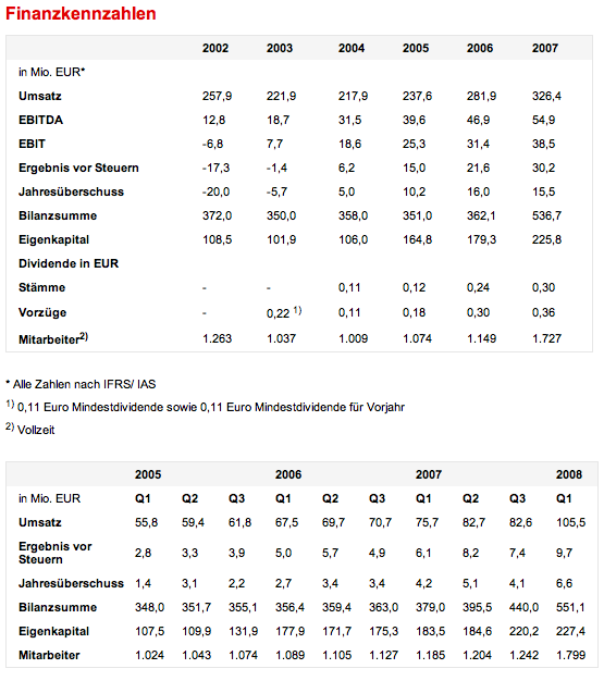 Wave XXL Juni 16, 2008 Kontinuierlich stimmt, und auch die Kursentwicklung ist beachtlich! Allerdings ist die Aktie schon sehr teuer und die Margen sind nicht der Hit (Zeitraum q2/07-q1/08): KGV: 26,0 KCV: 12,6 KBV: 2,6 KUV: 1,6 GKR: 5,1 Umsatzrendite: 6,3 EKQ: 40,6 EKR: 10,0 Da ist der Zug wohl fürs Erste abgefahren.... Diesen Beitrag teilen Link zum Beitrag