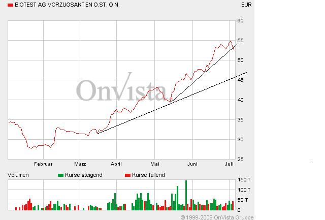 cardiff97 August 20, 2007 Was haltet Ihr von dieser Aktie? Hat diese Potenzial? Die Biotest AG konzentriert ihre Geschäftstätigkeit auf Aktivitäten rund um das menschliche Blut und auf die Verhütung von Schäden durch krank machende oder umweltbelastende Keime. Mit dieser Fokussierung hat das Unternehmen seine geschäftlichen Schwerpunkte auf die Indikationsgebiete Transfusions- und Transplantationsmedizin, Autoimmunerkrankungen sowie Infektion- und die Hygienekontrolle gelegt. Dabei nutzt Biotest die interdisziplinären Synergien auch zur Entwicklung innovativer Produkte. Dazu gehören z.B. neue, in der klinischen Erprobung befindliche monoklonale Antikörper, die biotechnologisch hergestellt und mittelfristig die Produkte zur Behandlung von Autoimmunkrankheiten (u.a. rheumatische Arthritis) ergänzen sollen. Die Aktivitäten von Biotest sind seit dem Geschäftsjahr 2005 in die drei operativen Segmente Pharma, Diagnostik und Biotherapeutika gegliedert. Für die Experten vom Anlegermagazin "Der Aktionär" ist die Biotest-Aktie (ISIN DE0005227235/ WKN 522723, VZ) ein klarer Kauf. Mit der Erfindung eines Blut-Tests zur Bestimmung des Rhesusfaktors habe Biotest im Jahr 1948 Medizingeschichte geschrieben. Innovative Produkte zu entwickeln, sei auch heute noch das Ziel des Konzerns. Dieser sei in den Segmenten Pharmaprodukte (größter Wachstumstreiber), Biotherapeutika und Diagnostik aktiv. Biotest habe vor kurzem für das Hyperimmunglobulin Cytotect von der FDA in der Indikation Behandlung von Cytomegalie-Infektionen während der Schwangerschaft den Status als Orphan Drug erhalten. Denselben Status habe die europäische Zulassungsbehörde EMEA Cytotect bereits vor einigen Wochen für Europa erteilt. In den Vereinigten Staaten und Europa erwarte Biotest für die neue Indikation ein zusätzliches Marktpotenzial von 70 Mio. EUR jährlich. In den ersten neun Monaten des Geschäftsjahres 2006 habe Biotest den Umsatz um 17,5 Prozent auf 207,9 Mio. EUR steigern können. Dabei sei das EBIT um 19 Prozent auf 21,9 Mio. EUR gewachsen. Für das laufende Geschäftsjahr erwarte das Unternehmen einen Umsatzanstieg von mindestens 10 Prozent und eine überproportionale Gewinnsteigerung. Experten würden dieses Jahr bei Immunglobulinen, auf Grund eines Nachfrageüberhangs, signifikante Preissteigerungen in Aussicht stellen. Biotest werde von dieser Entwicklung stark profitieren. Hochinteressant sei darüber hinaus, dass Biotest mit BT-061 (Indikationen rheumatoide Arthritis und Schuppenflechte) einen potenziellen Blockbuster im Gepäck habe. Neben diesen positiven Perspektiven überzeuge auch das aktuelle Chartbild der Biotest-Vorzugsaktie. Nach Ansicht der Experten vom Anlegermagazin "Der Aktionär" ist die Biotest-Aktie für spekulative Anleger ein klarer Kauf. Das Kursziel sehe man bei 33 EUR. Mich würde Eure Meinung interessieren, da ich überlege, diese Aktie in mein Portfolio aufzunehmen. Vielen Dank für Euer Feedback Diesen Beitrag teilen Link zum Beitrag