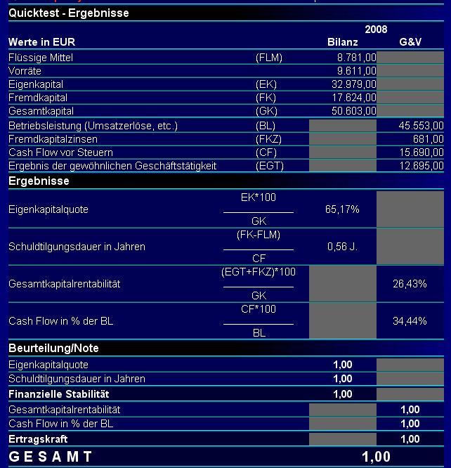 Adler März 11, 2009 · bearbeitet März 11, 2009 von Adler_92 Habe gerade eine grobe Fundamentalanalyse auf Basis 2007/2008 mit Hilfe des Quicktests gemacht: Wie gewohnt vom Vorjahr. Sagenhafte Zahlen!!! Eigenkapitalrendite: 29% Umsatzrendite: 21% Rentabel bis zum geht nicht mehr! Return on Investment: 19% Gearing: - 19% Liquidät: 164% dynamischer Verschuldungsgrad: -0,5 Jahre (geht das???) also das würde heißen, dass Unternehmen ist gar nicht verschuldet und könnte bei gleichbleibenden Verbindlichkeiten die Schulden schon für ein halbes Jahr vorrausbezahlen? Das sind alles top Zahlen!! Aktuelle Bewertung: KGV: 18 KBV: 4,6 KCV: 11 KUV: 3 Nun, historisch gesehn ist das gut. Aber wirklich billig auch nicht, sondern eher teuer. Man achte vor allem auf die Bewertung des letzten Jahres, die Toni uns oben gezeigt hat. Das sind schon große Unterschiede. KGV: 26,8 => teuer!KUV: 5,5 => teuer! KBV: 7,8 => teuer! KCV: 23 => teuer! Die Zahlen haben sich im Jahr 2008 gegenüber dem Vorjahr einfach nur verbessert. Hier ist von Krise nichts zu spüren. Charttechnisch kann euch Toni vllt noch was zeigen, oder Duder (nur so daher gesagt) Aber eig. dürfte sich der Kurs noch im Aufwärtstrend befinden, der von Toni oben eingezeichnet ist. Diesen Beitrag teilen Link zum Beitrag
