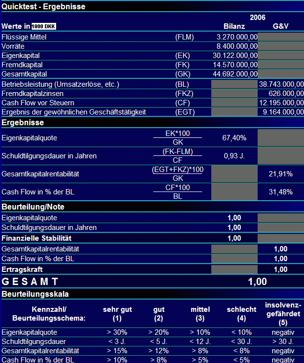 Toni April 21, 2008 Hier die grobe Fundamentalanalyse auf Basis des Geschäftsberichts 2007 in Form des Quicktests: Immer noch bombastische Zahlen! Zur Bewertung der Aktie (aktueller Kurs ca. 361 DKK): KGV: 26,8 => teuer! KUV: 5,5 => teuer! KBV: 7,8 => teuer! KCV: 23 => teuer! Fazit: Sehr gutes Unternehmen, aber die Aktie ist noch teurer geworden! Diesen Beitrag teilen Link zum Beitrag
