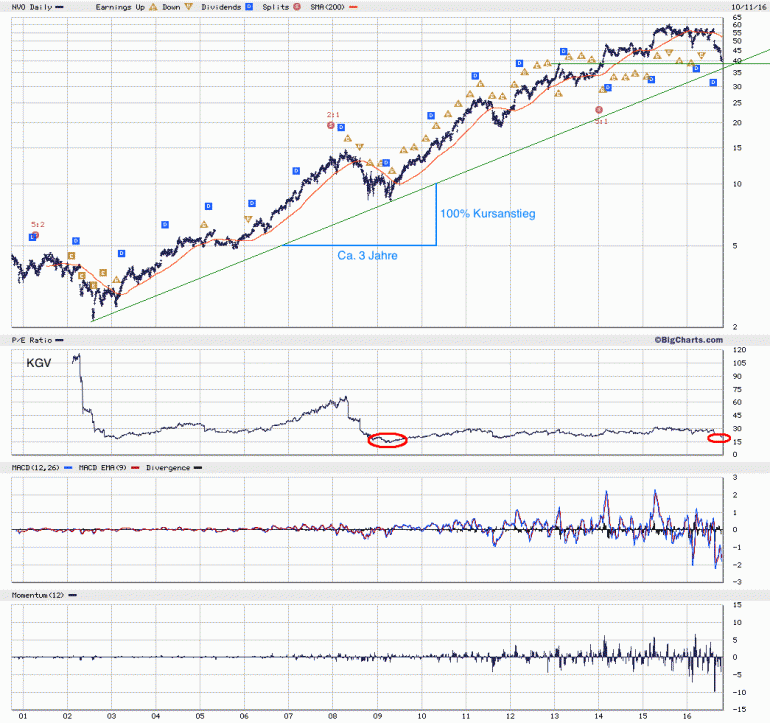 Ende 1987 stand die Aktie bei 0,21 USD, heute bei 40,49 USD, das macht eine