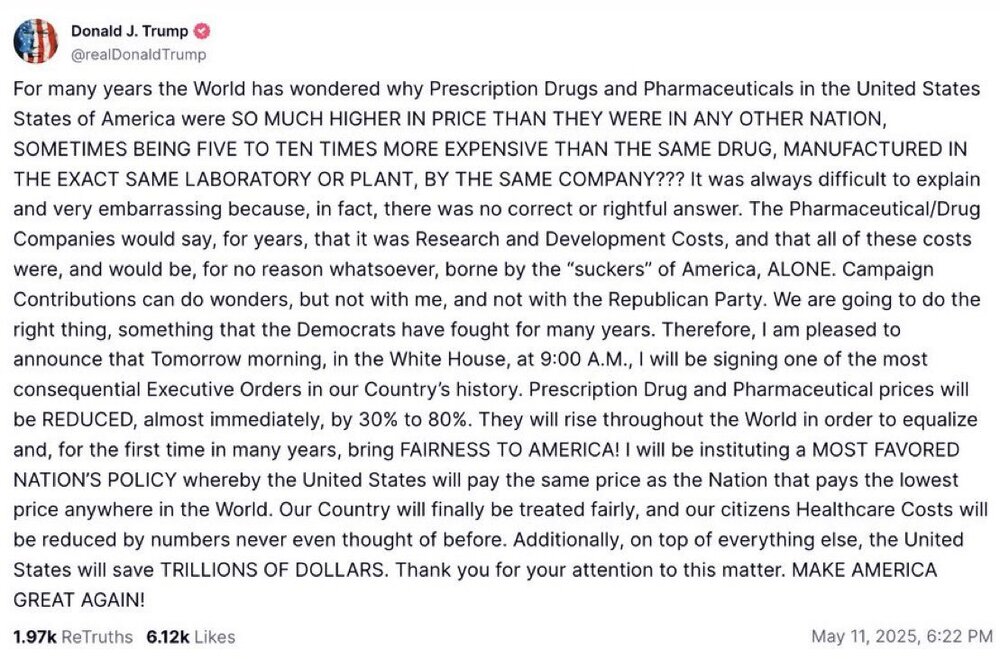 Ramstein Mai 12, 2025 Mehr dazu und den Problemen: Zitat Trump announces he’ll sign executive order that aims to cut drug prices His prior rule, called “Most Favored Nation,” was finalized in late 2020 but blocked by federal courts If the new executive order is comparable to the 2020 rule, both Medicare and its beneficiaries could see savings. But it could also limit patients’ access to medications, experts said. Much depends on how the policy is structured. At least one health care policy analyst threw cold water on Trump’s claim that his latest effort would greatly reduce drug costs. “Trump has a long history in his first term of talking bigger on drug pricing than what his policies would actually do,” Chris Meekins, an analyst with Raymond James, wrote in a note to clients Sunday evening. “The more grandiose Trump’s proposed executive actions, the less likely they are to be implemented as successful court challenges will be much more likely.” The initiative will likely face stiff opposition from the pharmaceutical industry, which successfully halted the first iteration. Diesen Beitrag teilen Link zum Beitrag
