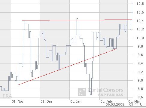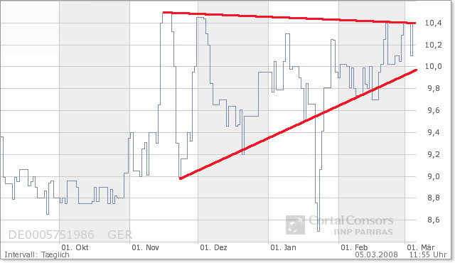 tschenser März 5, 2008 hallo an alle, wer kann mir charttechnisch sagen, ob es sich wirklich um ein aufsteigendes dreieck handeln kann? Diesen Beitrag teilen Link zum Beitrag