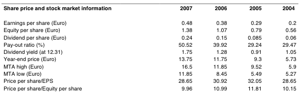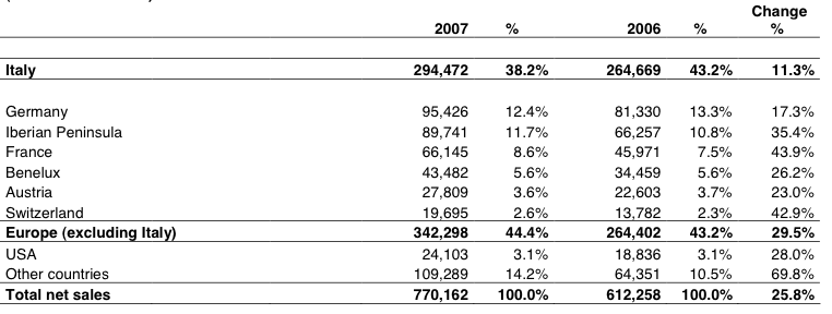 Drella März 9, 2008 · bearbeitet März 9, 2008 von Profi hey wayne, wie erkläst du dir die unterschiedlichen ergebnisse für die ratios zwischen den angaben aus dem GB und deinen ergebnissen? KBV:2004: 10.06 2005: 11.82 2006: 11.42 2007: 8.35 KGV 2004: 27.80 KGV 2005: 32.02 KGV 2006: 36.99 KGV 2007: 25.68 KGV 2008e: 15.66 KGV 2009e: 12.84 meine übersicht: das cf-wachstum ist fast schon pervers. die rentabilitätskennzahlen sind, wie von wayne schon erwähnt, sehr konstant. die ausschüttungsquote ist gemessen am wachstum extrem hoch! wenn man sich ansieht, wo der umsatz erziehlt wird, wird deutlich, wie viel potential geox nur durch expansion noch hat: --> es werden immernoch fast 40% des umsatzes in italien erwirtschaftet. der umsatz in den usa ist mit gut 3% gar nichts,... gruß profi Diesen Beitrag teilen Link zum Beitrag