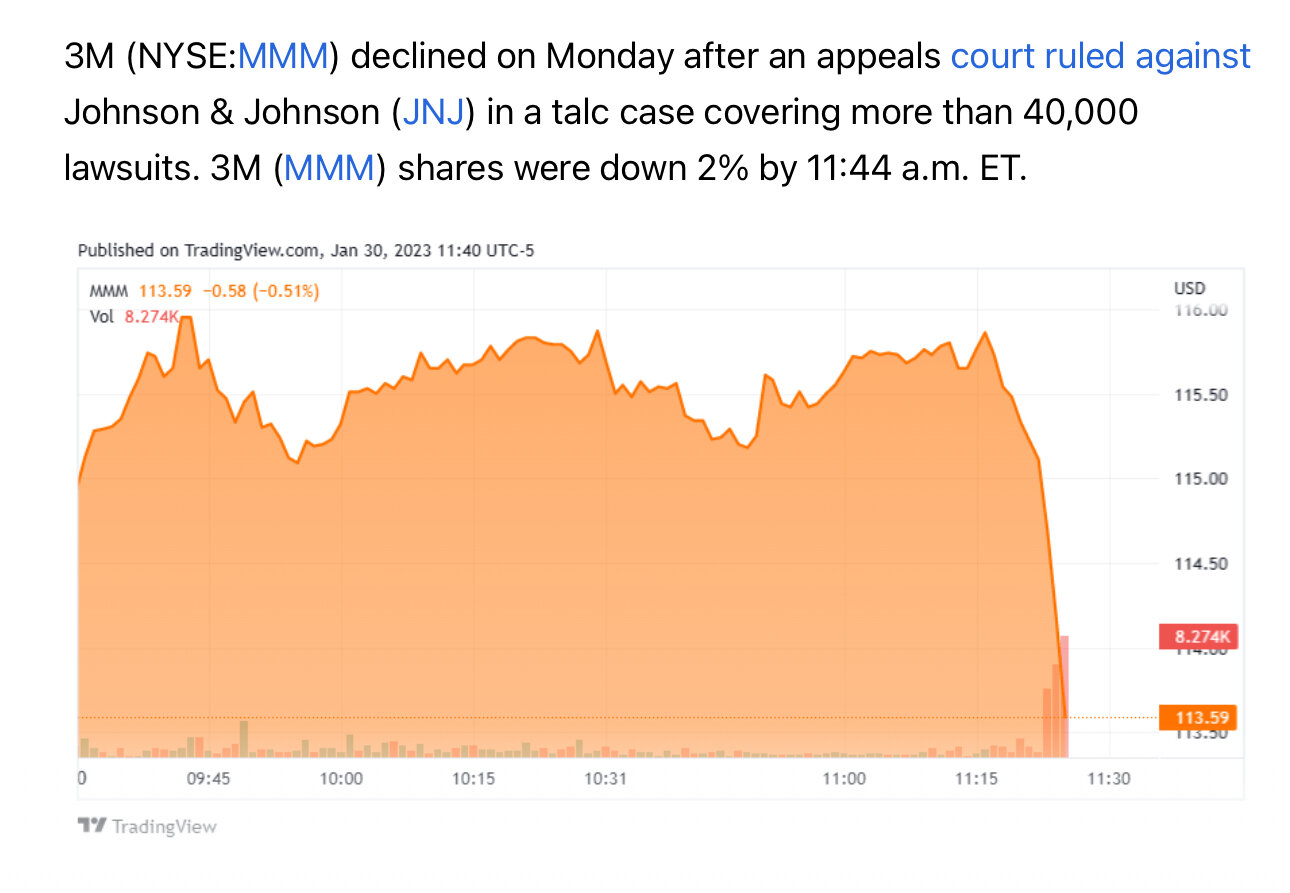 hattifnatt Januar 30, 2023 · bearbeitet Januar 30, 2023 von hattifnatt Am 26.2.2022 um 10:31 von hattifnatt: Update zu den eben erwähnten Earplug-Verfahren: Nachdem der "Texas-Two-Step" (Tochterunternehmen für betroffenes Produkt ausgliedern und dann Bankrott gehen lassen, um die Strafzahlungen zu vermeiden) bei J&J juristisch erfolgreich zu sein scheint (Asbest in Babypuder), könnte 3M eine ähnliche Strategie in Betracht ziehen: https://seekingalpha.com/news/3806206-3m-rides-johnson-johnson-bankruptcy-process-ruling-to-5-rally Plötzlich gibt's doch Zweifel an der Legalität dieses Tricks https://seekingalpha.com/news/3929431-jj-falls-after-losing-appeals-court-ruling-in-talc-litigation ... und die 3M-Aktie reagiert entsprechend: https://seekingalpha.com/news/3929461-3m-declines-suddenly-after-johnson-johnson-loses-appeal-on-talc-litigation Diesen Beitrag teilen Link zum Beitrag