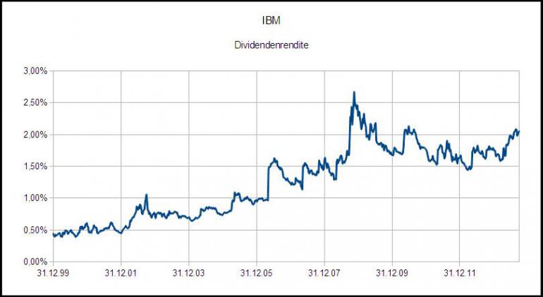 35sebastian November 8, 2013 Haltet ihr den aktuellen Kurs für attraktiv für einen Einstieg? Ich persönlich halte ihn (aus Sicht eines langfristigen Dividend-Growth-Investors) für durchaus attraktiv, um eine erste Investition zu tätigen. Warum? Hier mal ein langfristiger Verlauf der Dividendenrendite: Soviel zu meinen Überlegungen. Muss aber jeder nochmal selbst nachdenken. Ich bin mit einer ersten Position zu 2,05% investiert. Und ich würde bei ca. 2,3% nachkaufen. Klar muss jeder selbst nachdenken. Ich habe ja schon nachgedacht. Die Entscheidung , den Kauf an der Rendite festzumachen , ist mir neu. In der jetzigen Börsenstimmung denke ich eher an Verkäufe nach und werde in absehbarer gewinnbringende Käufe ab 2009 in Bälde realisieren. Wenn die Stimmung sich eintrübt, werden fast alle Kurse zurückgehen. Vielleicht ist dann der Kurs von IBM unter 125. Wenn nicht , ist auch nicht schlimm. Meine Technologiewerte haben einen Anteil von über 25%, vielleicht noch mehr nach dem netten Anstieg der three bigs. Diesen Beitrag teilen Link zum Beitrag