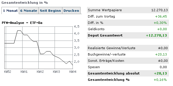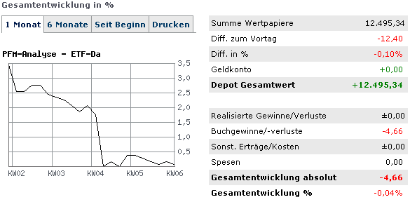 Der ETF-Dachfonds P wurde im Januar mit 250,- bespart.