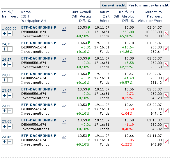 Der ETF-Dachfonds P wurde im November mit 250,- bespart.