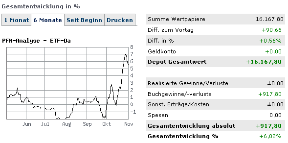 Der ETF-Dachfonds P wurde im Oktober mit € 250,- bespart.