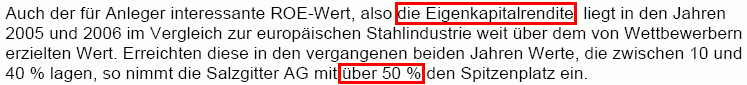 Toni Mai 27, 2007 · bearbeitet Mai 27, 2007 von Toni Rede des Vorstandsvorsitzenden Wolfgang Leese zum Download: http://www.salzgitter-ag.de/MDB/Investor_R...V%20Rede%20.pdf Diese Rede wurde auf der HV, am 23.5.2007, gehalten. Auszug: Leese über Beteiligungen: Wenn Akquisitionen wirtschaftlich unattraktiv sind, werden sie nicht gemacht. Richtig so! Das mag für den einen oder anderen selbstverständlich sein, es werden aber trotzdem von vielen Firmen immer wieder völlig unsinnige Übernahmen gemacht. Salzgitter macht es vernünftig, eben nur, wenn es sich auch lohnt. Insgesamt habe ich den Eindruck, dass das Management sehr rational handelt, was eine Grundvoraussetzung für ein Investment in ein Unternehmen für mich ist. Diesen Beitrag teilen Link zum Beitrag