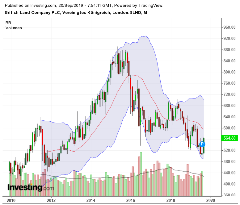 nicco September 20, 2019 Am 11.7.2016 um 18:53 von Dandy: Das hat mich neugierig gemacht und der Kurs von British Land ist tatsächlich heftig eingebrochen. Ich habe den Geschäftsbericht noch nicht gelesen, aber offenbar bestitzt British Land (nur?) britische Gebäude und viele davon in London. So gesehen ist die heftige Reaktion schon zu verstehen, allerdings sprechen wir hier von einem Kursverlust gegenüber dem Hoch von Ende letzten Jahres von ca 40%, was mir schon reichlich heftig erscheint. Das schwache Pfund trägt da natürlich seinen Teil bei und die Unsicherheit, insbesondere im überhitzten Immobilienmarkt in London, tut ihr übriges. So ganz angemessen scheint mir die Kursreaktion aber nicht zu sein, zumal das Zitat oben eine schlüssige Begründung für eine mögliche Überreaktion liefert. Diese Immobilienunternehmen wurden als Parkplatz für Liquidität von Immobilienfonds verwendet. Da ein hoher Verkaufsdruck kürzlich entstanden ist und diese ihre Immobilien nicht so schnell verkaufen können, wurden eben Aktien von diesen Unternehmen verkauft. Das wiederum könnte einen übermäßigen und irrationalen Verkaufsdruck ausgelöst haben. Ich möchte den Geschäftsbericht noch überfliegen, aber mir scheint, als könnte sich hier eine Chance für eine kleine Immobilienspekulation in England bieten. Möglicherweise könnte eine mittlere Haltedauer relativ hoch mit niedrigem Risiko belohnt werden. Irgendjemand mit Meinungen dazu? British Land ist attraktiv bewertet und vom Chart vermute ich, dass man die Aktie nicht viel günstiger bekommen wird. NAV 905p, Kurs ca. 564 p, Dividende 31 p. Ergebnis 2019 Robust financial performance Underlying EPS down 6.7% to 34.9p due primarily to one off surrender premia received last year and impact of asset sales; buybacks contributing 1.2p LFL rental growth of £15m; more than offsetting the £14m impact of Retail CVAs Portfolio value down 4.8%; Retail down 11.1%, Offices up 1.1% and developments up 10.8% EPRA NAV down 6.4% at 905p, with buybacks contributing 10p Full year dividend up 3.0% at 31p; total accounting return -3.3% Proposed FY20 dividend increase of 3% https://www.britishland.com/news-and-views/press-releases/2019/15-05-2019 Meldung vom 18.9. British Land Secures GBP54 Million In Future Rent For Project Pipeline Monatschart Diesen Beitrag teilen Link zum Beitrag