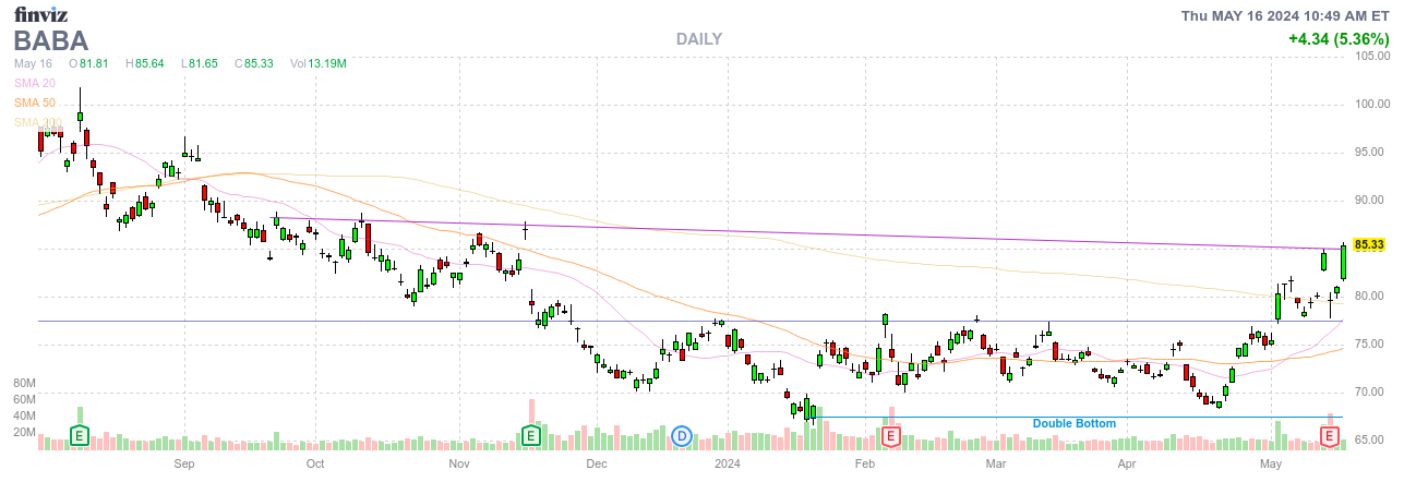 LongtermInvestor Mai 17, 2024 vor 14 Stunden von Laser12: BABA scheint sich langsam zu stabilisieren Sieht danach aus. Leider dennoch aufgrund der politischen Situation hoch spekulativ. Halte die vorhandene Position weiter. Diesen Beitrag teilen Link zum Beitrag