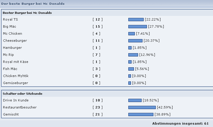 Könnte man mit entsprechenden Umfragen sicherlich noch toppen.... :rolleyes: .... je niedriger der Anspruch, desto höher die Zahl der Leute, die sich angesprochen fühlen..... gäbe sicher noch so einige Themen.... B)