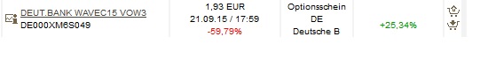Chartwaves September 21, 2015 Wie hätte man das umgesetzt: Gar nicht. Irgendjemand muss dir diesen Short verkaufen und sobald die Info rausgekommen ist, sind die Preise für Shorts nach oben gegangen. Auch wenn die VW-Aktie erst heute um 9 Uhr über Xetra gehandelt wurde und dann 20% eingebrochen ist, war diese Info im äußerbörslichen Handel längst eingepreist. Es wäre doch keiner so blöd gewesen dir gestern Abend, nach Bekanntgabe dieser Meldung, dir noch einen Short zum alten Preis zu verkaufen. Genaus wie gestern Abend keiner mehr die Aktie für 160 Euro hätte kaufen wollen. Gestern zum alten Preis zu shorten wäre ja ein risikofreies Geschäft gewesen und müsstest hoffen noch einen Deppen zu finden, der die Info nicht erhalten hat. Du als Privatanleger bist dafür aber viel zu langsam. Ja schon. Dass die Aktie verlieren würde war klar - aber nicht wie viel genau. Nur mal als Beispiel: Es könnte ja sein, dass ein Marktteilnehmer schätzt dass sie 10% verliert, ein anderer aber dass sie 20% verliert. Wenn man nun eine Wette auf den stärkeren Rückgang eingehen könnte und damit Recht behält... Diesen Beitrag teilen Link zum Beitrag