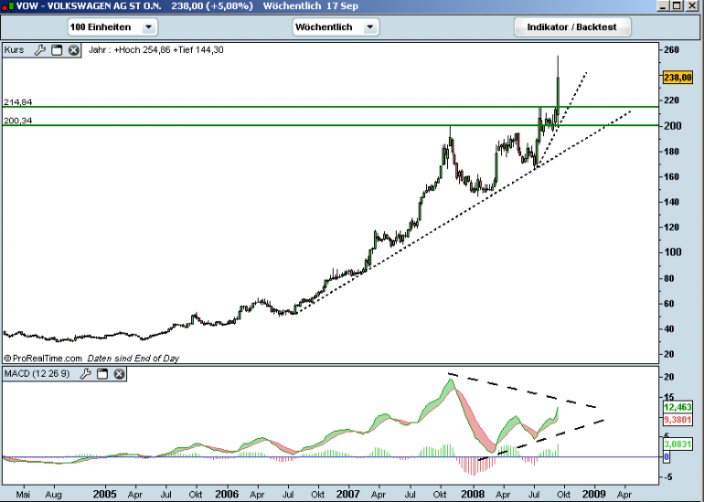 Swai September 18, 2008 · bearbeitet September 18, 2008 von Swai VW tritt in die finale Phase ein. Wer hier nicht einen SL regelmäßig mitzieht ist selbst schuld. VW: 264.29 (+24.30 , +10.12%) Beide Charts sind noch nicht mit dem heutigen Anstieg aktualisiert. Gruß, Swai Diesen Beitrag teilen Link zum Beitrag
