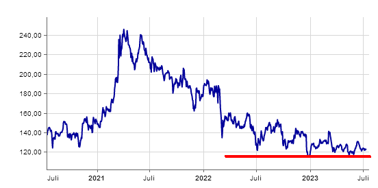 Jetzt könnte man sich aber einbilden, dass bei ~ 120 € ein Boden gefunden wurde.