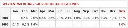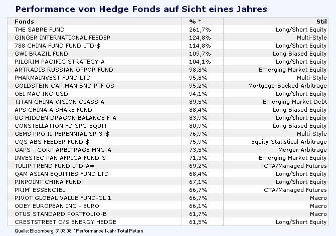 norisk April 16, 2008 Hedge-Fonds outperformen S&P 500 und Dow Jones 07.04.2008 (BoerseGo.de) - Im Zehnjahresvergleich haben gemäss dem Credit Suisse/Tremont Hedge Fund Index Hedge-Fonds nach Abzug, der von ihnen erhobenen Gebühren, eine Durchschnittsrendite von 11,1 Prozent pro Jahr erzielt und damit sowohl den S&P 500 als auch den Dow Jones outperformt. Der S&P 500 stieg in diesem Zeitraum um durchschnittlich 10,5 Prozent im Jahr. Der Dow Jones Index konnte im gleichen Zeitraum nur um 7,4 Prozent pro Jahr an Wert zulegen. Ohne Berücksichtigung der Gebühren war der Renditevorteil der Hedge-Fonds noch größer. Dabei wurde in den letzen 14 Jahren lediglich in den Jahren 1994 und 1998 keine positive Rendite erzielt. Die anderen Jahre beendete der Hedge Fund Index jeweils im Plus. Als Trend sei derzeit zunehmend zu beobachten, dass institutionelle Anleger nicht mehr nur extern in Hedge-Fonds investieren, sondern zunehmend Finanzinstitute auch eigene Hedge-Fonds gründen. So ist die Credit Suisse derzeit dabei einen eigenen Single-Manager-Hedge-Fonds aufzubauen und ihren Kunden anzubieten. Diesen Beitrag teilen Link zum Beitrag