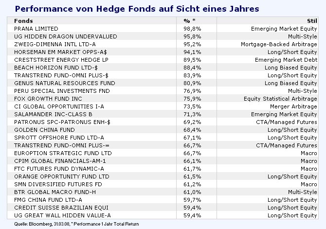 norisk April 17, 2008 Morningstar: Hedgefonds hatten das schlechteste Quartal seit 4 Jahren 17.04.2008 New York (BoerseGo.de) - Q1 war auch für die Hedgefonds wenig erfreulich. Diese unkontrollierten Finanzhäuser insgesamt hatten das schlechteste Quartal seit 4 Jahren, meldet die Beobachtungsfirma Morningstar. Der von ihr ermittelte 1000 Hedge Fund Index fiel in Q1 um 1,51%. Betroffen waren vor allem Fonds, die sich auf Aktien konzentrieren, besonders Emerging Markets oder schwach kapitalisierte US-Firmen (Small Caps). Die Statistik wurde allerdings durch die Trendverfolger, vor allem im Rohstoffbereich, verbessert. Sie profitierten, bislang jedenfalls, von der Spekulationsblase (George Soros), die sie selbst immer weiter aufpumpten. Diesen Beitrag teilen Link zum Beitrag