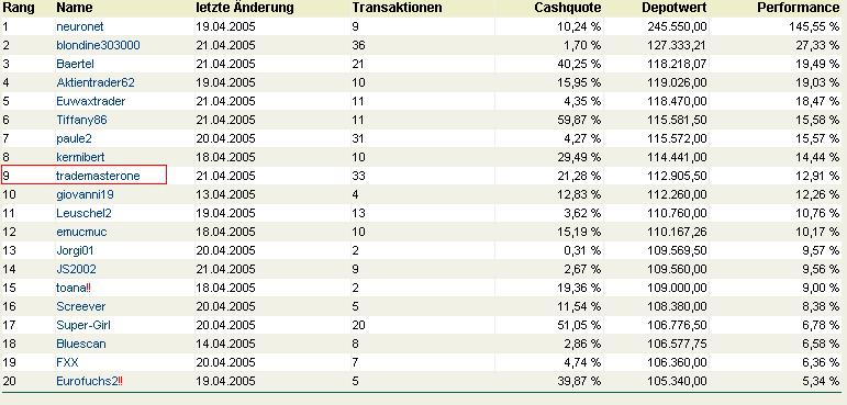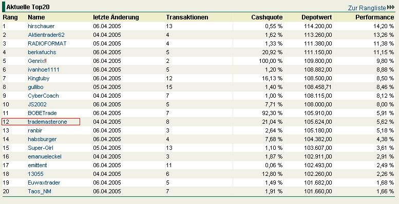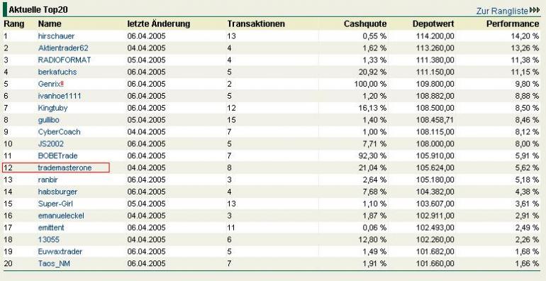 TrademasterOne auf Platz 7 [wallstreet-online]