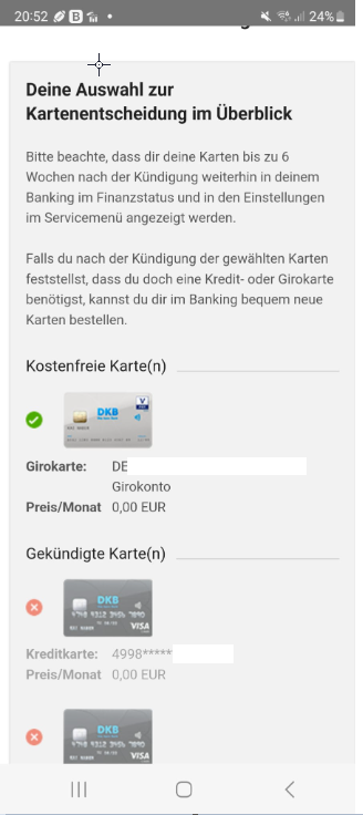 Allesverwerter Januar 24, 2023 Am 21.1.2023 um 09:26 von saman_: @Allesverwerter: Es sollte mittlerweile bekannt sein, die DKB App ist nicht so gut. Warum versuchst du es nicht mit der Web Oberfläche? Am 21.1.2023 um 15:59 von bondholder: Problemlösung: Kündige die Girocard im DKB-Onlinebanking https://www.dkb.de/banking. Die Maske war aus dem OnlineBanking bzw. dort genauso angezeigt.; nur der Screenshot war am Handy gemacht. Bis MittJanuar war die GiroCard nicht kündbar und als kostenfrei hinterlegt. Mal schauen, was die DKB in 2 bis 3 Monaten antwortet ;-) Diesen Beitrag teilen Link zum Beitrag