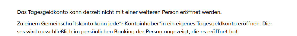 Weiß jemand, wie man bei einem Gemeinschaftsgirokonto bei der DKB jetzt ein Gemeinschaftstagesgeldkonto erstellen kann? Denn bislang kann man es nur für sich selbst erstellen. Gibt es dann separate Jahressteuerbescheinigungen an die jeweiligen Personen, obwohl man ein Gemeinschaftsgirokonto hat?