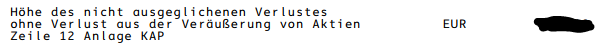 west263 März 4, 2022 vor 2 Minuten von kariya: Komischerweise wird der Verlust, der eigentlich im Topf stehen müsste, nicht auf das folgende Jahr also auf 22 übertragen sondern auf der Bescheinigung, in korrekter Höhe ausgewiesen, der Topf wurde auf 0 gesetzt. habe gerade mal nachgeschaut, es liegt bei mir noch keine Bescheinigung vor und der Verlusttopf ist noch gefüllt. Diesen Beitrag teilen Link zum Beitrag