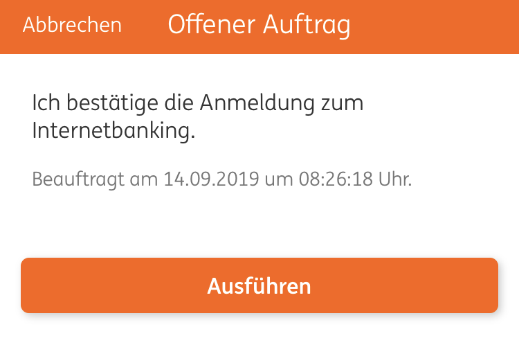 Warambuffet September 14, 2019 vor 12 Stunden von sp4rki3: bei ING gibt es wirklich Verbesserungsbedarf: wenn ich mich mit dem PC auf ING einloggen will und die APP ist zufaellig schon eingeloggt bekomme ich nicht etwa eine Nachricht auf der APP. Sondern muss mich ohne weiteren Hinweis erst aus der APP ausloggen, aber sofort durch EIngabe der Pin wieder einloggen und zur Bestaetigung des PC-Logins gleich noch ein zweites mal die Pin in der APP eingeben. Zudem fehlt eine eindeutige Zuordnung zwischen dem gewuenschten Vorgang und der Autorisierung hierzu (z.B. durch eine eindeutige Zahl). Man bestaetigt im Endeffekt durch die APP nur blind 'irgendeine' Aktion die 'irgendwo' anders ablaeuft. In der iOS-App genügt ein Herunterziehen der Kontenliste zum Aktualisieren und Anzeigen von diesen Autorisierungshinweisen. Auch wird in diesen der Zweck und Auslösezeitpunkt der Aktion angezeigt: Diesen Beitrag teilen Link zum Beitrag